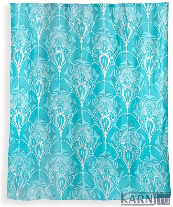 Занавеска из 100% полиэстера для ванны с 12 люверсами под кольца. Штора обработана специальной пропиткой, отталкивающей воду. Внизу по всей длине вшит шнур-утяжелитель.