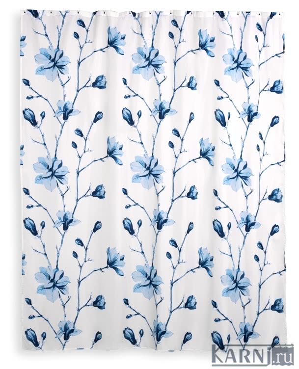 Занавеска из 100% полиэстера для ванны с 12 люверсами под кольца. Штора обработана специальной пропиткой, отталкивающей воду. Внизу по всей длине вшит шнур-утяжелитель.